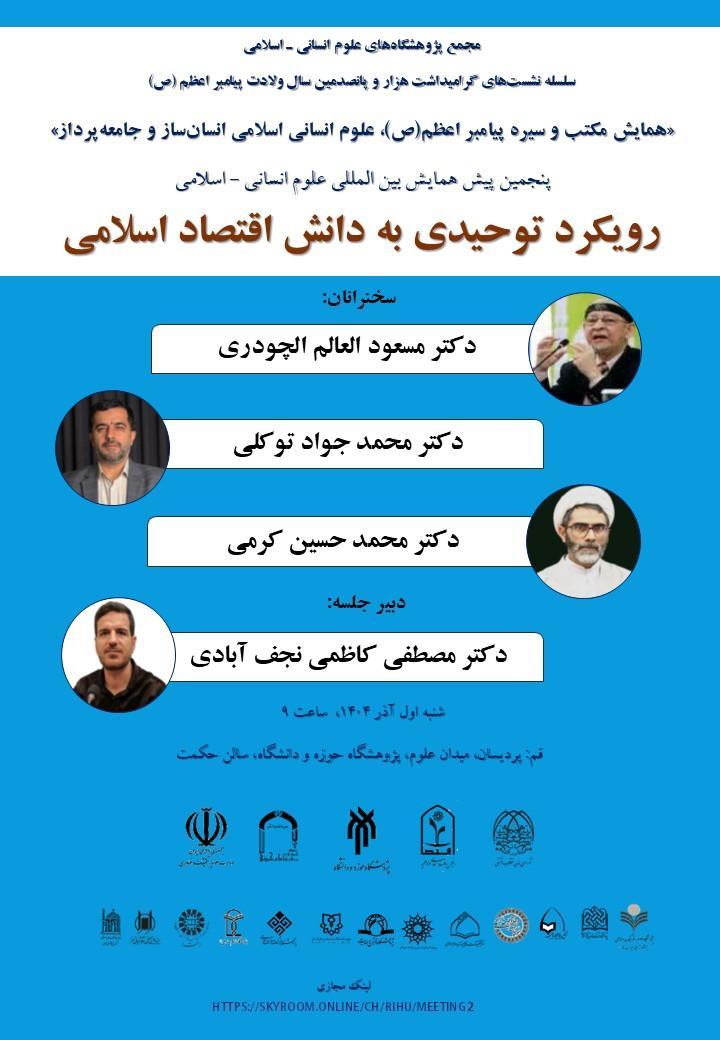 به گزارش روابط عمومی، پژوهشگاه حوزه و دانشگاه با همکاری مجمع پژوهشگاههای علوم انسانی ـ اسلامی و دبیرخانه همایش مکتب و سیره پیامبر اعظم(ص)، علوم انسانی اسلامی انسانساز و جامعهپرداز و مراکز علمی و پژوهشی در حوزه علوم انسانی- اسلامی پنجمین پیش همایش بین المللی علوم انسانی – اسلامی با عنوان «رویکرد توحیدی به دانش اقتصاد اسلامی» را برگزار میکنند.
